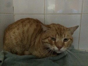 ג'ינג'י קבע אצלנו שיא מפוקפק – החתול עם האבצס הגדול ביותר, לא פחות מ – 280 מיליליטרים של מוגלה(!!!) נוקזו מתוך אבצס בפניו. הוא ננשך בלחי והתפתח לו כיס מוגלה שגדל וגדל עד שגרם לעצימת העין והשתפל עד למעבר לצואר. בתמונה ג'ינג'י לאחר הניקוז.