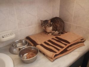 אפור הגיע עם שבר לסת שגרם לו לכאב עז וחוסר יכולת לסגור את הפה. לאחר ניתוח לקיבוע השבר ואשפוז של שלושה ימים עם עירוי נוזלים ותרופות תומכות הוא שוחרר להמשך טיפול תומך גם בבית. שברי לסת מצריכים זמן ממושך עד להחלמה ולכן מצריכים טיפול אינטנסיבי של זריקות ונוזלים תת עוריים גם בבית. מזלו של אפור שהוא נמצא בבית הנכון. בעליו התגייסו במאה אחוזים לטיפול בו.