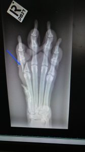 פולי השובב שבר את האצבע בכף רגלו הקדמית. זה לא עצר אותו מלהמשיך לרוץ (על שלוש רגליים) ולזנק מעל חומות גבוהות.