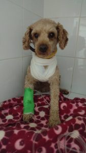 טייני כשמו כן הוא – פודל פצפון, שהגיע שותת דם לאחר קרב כלבים. הוא לא רק דימם אלא גם שבר צלעות וריאותיו נוקבו ואויר החל להצטבר בגופו. טייני מיד אושפז לטיפול תומך מציל חיים ולאבחון מקיף. הוא אושפז למשך יומיים עד שהתאושש מספיק בשביל לשחררו לביתו עטוף בתחבושות שממשיכות לעצור את דליפת האויר.