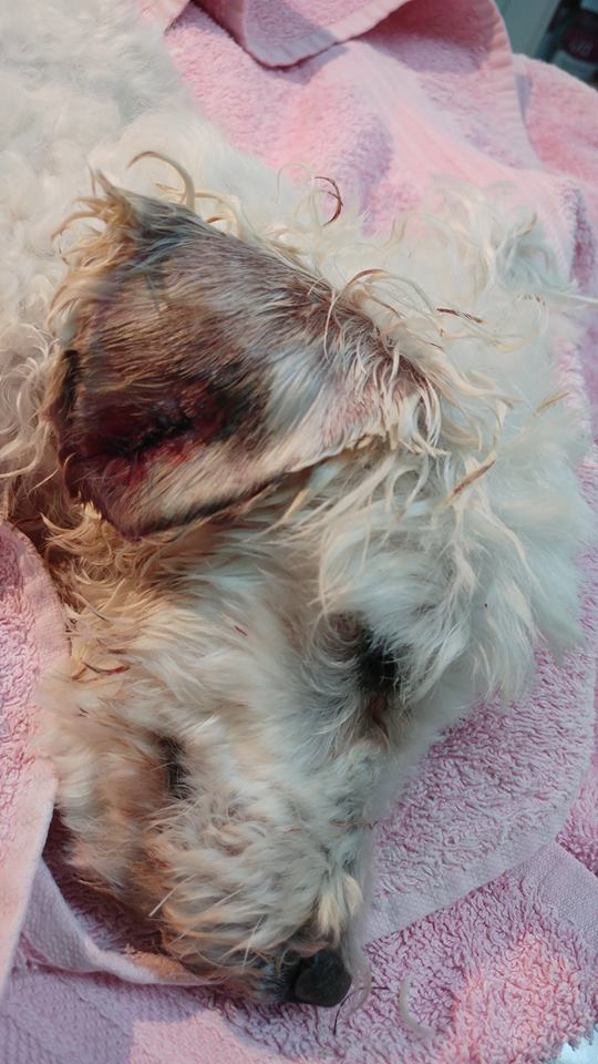 'כבש' התעצבנה על חתול שבחר לחלוף בחצר הבית שלה. הוא לא נשאר חייב והרביץ לה וגרם לחתך עמוק ומדמם באוזן שלה. אוי כמה שהאוזן דיממה, הבעלים סיפרו שכל הבית הקירות והתקרה עם שפריצים של דם בגלל השילוב הקטלני של אוזן מדממת וכלב שמנער את ראשו בלי הפסקה…